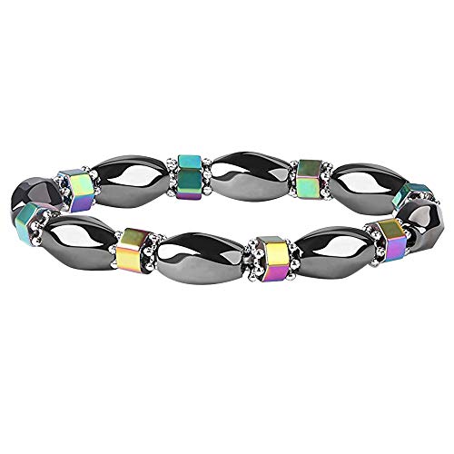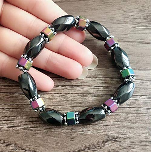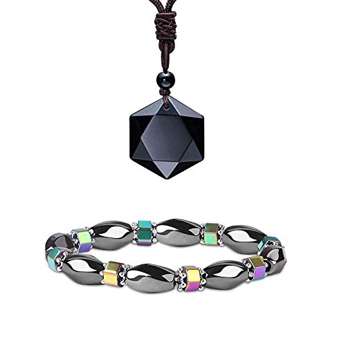 EneQutum - سلسلة بدلاية حجر زجاج بركاني اسود طبيعي سداسي مع سوار الدم المعدني مغناطيس معدن كريستال للنساء