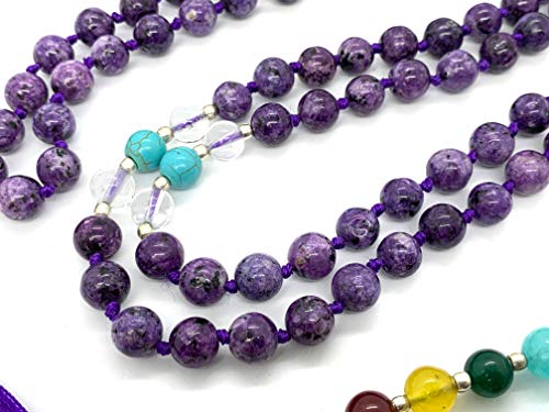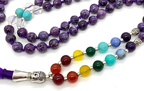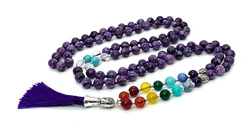 AWAKEN YOUR KUNDALINI - عقد مالا منشط ل 7 نقاط شاكرا مكون من 108 خرزة - قلادة جابا مالا للصلاة البوذية للتأمل والاستشفاء للنساء والرجال., احجار كريمة