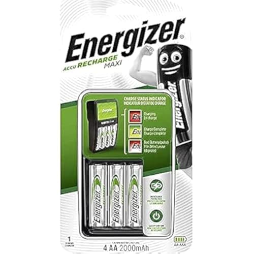 Generic - شاحن بطارية اكو قابل لاعادة الشحن ماكسي مع 4 بطاريات ايه ايه من انرجايزر