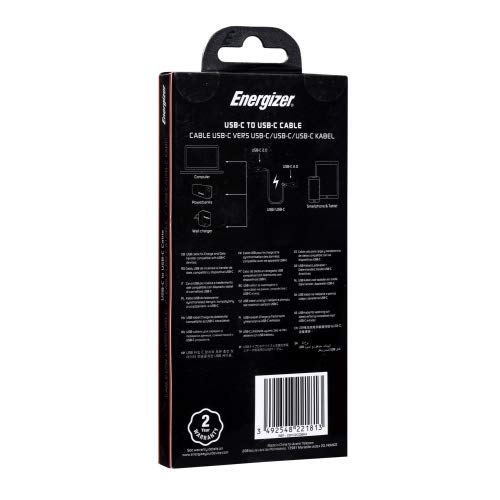 Energizer - انرجايز كابل USB نوع C الى USB نوع C بطول 1.2 متر - أسود وفضي - C61C2CGBK4