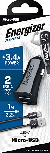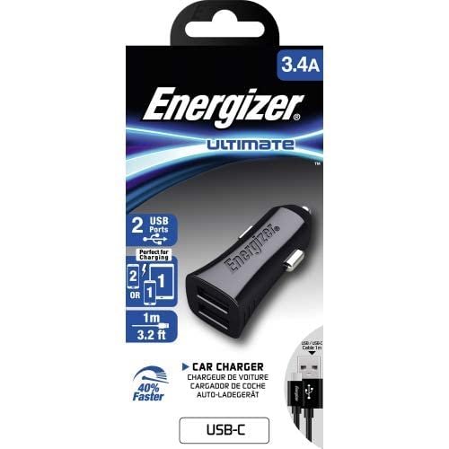 Energizer - شاحن سيارة بمنفذين يو اس بي مع كابل يو اس بي النوع سي من انرجايزر DCA2CUC23، 3.4 امبير - اسود