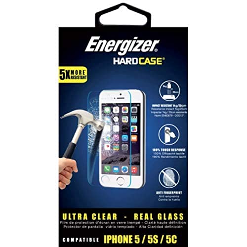 Energizer - شاشة حماية زجاج من انرجايزر لموبايل ايفون 5 و5S و5C، شفاف