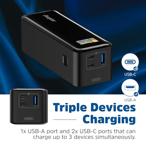 Energizer - باور بانك من انرجايزر بسعة 27000 ميلي امبير مع 3 منافذ USB تايب A و شاشة رقمية للشحن السريع، مناسب للهواتف و الأجهزة اللوحية و اللابتوب، لون أسود