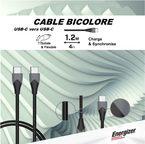 Energizer - كابل USB النوع سي إلى USB النوع سي 2.0 بلونين من انرجايز، طول 1.2 م، أسود