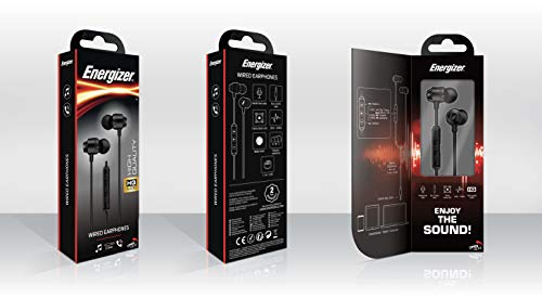 Energizer - سماعة CIA10BK داخل الأذن أذن بسلك من انرجايزر سي اي ايه 10 يو اكس 3.5 ملم أسود