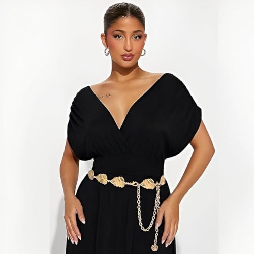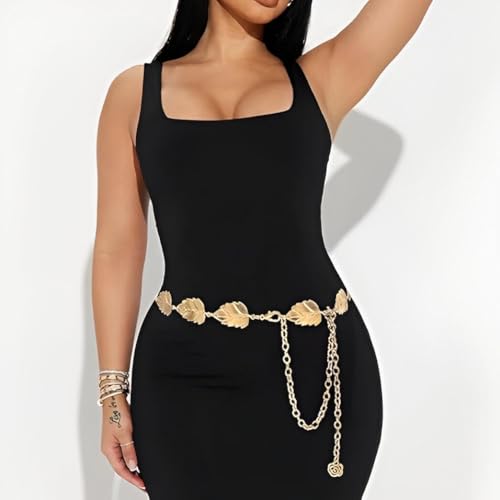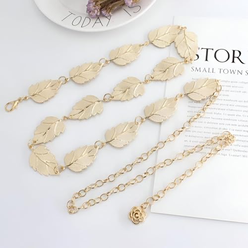 Generic - حزام سلسلة محفور - ملحق خصر معدني مصقول مع قفل مخصص قابل للتعديل، مثالي للفساتين الرسمية وفساتين حورية البحر ومجوهرات الجسم ذات الطبقات.
