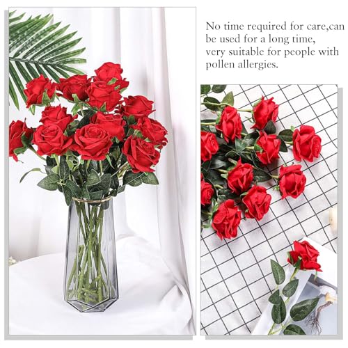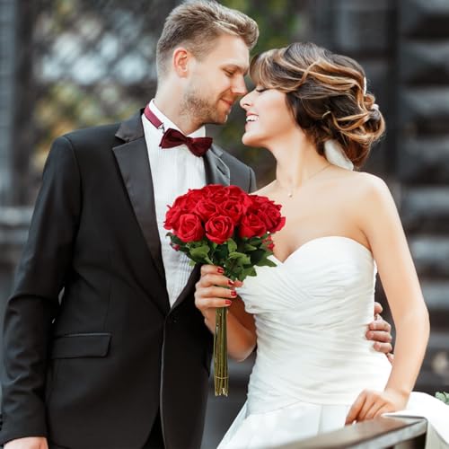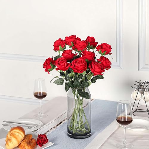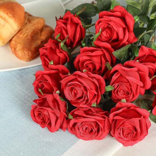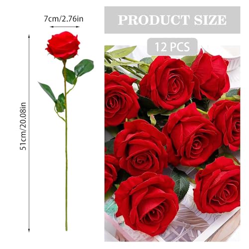 EnixwH - 12 × ورود صناعية من انيكسدبليو اتش زهور للديكور 52 سم واقعية بمقبض طويل وردة حريرية لتزيين حفلات الزفاف وباقة وعروض الزواج