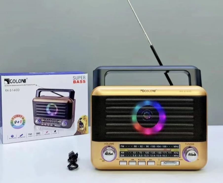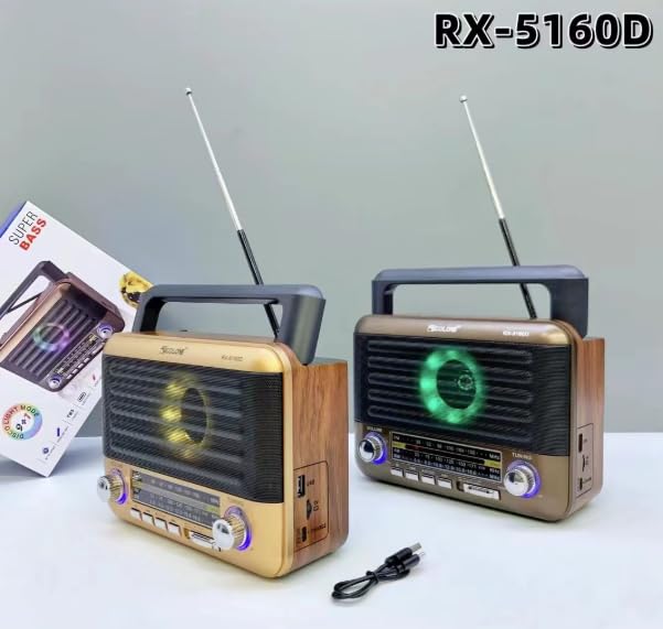 Generic - استمتع بصوت قوي ومتنقل مع سبيكر RX-5160D بتصميم كلاسيكي أنيق. يدعم بلوتوث، راديو FM / AM / SW، منفذ USB وكارت ميموري TF. بطارية قابلة لإعادة الشحن، مناسب للاستخدام داخل وخارج المنزل