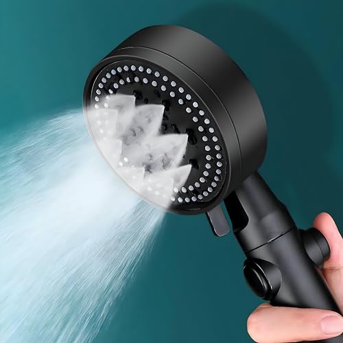 Spaceshoop - استمتع بضغط دش لا مثيل له مع رأس دش قابل للتعديل بـ 8 سرعات ونظام فلتر موفر للماء، الأن في الاسراء (أسود، رأس فردي)