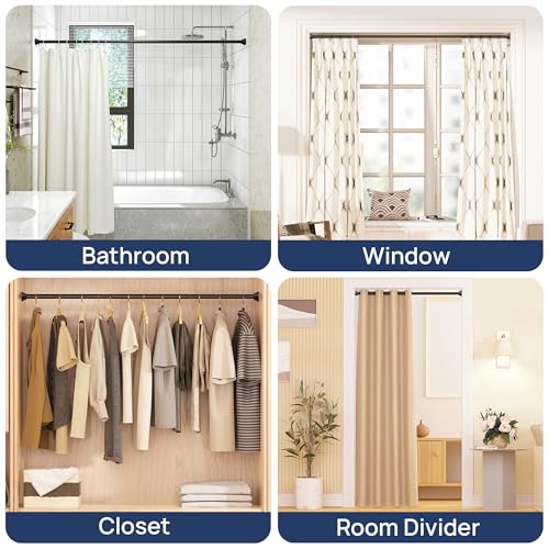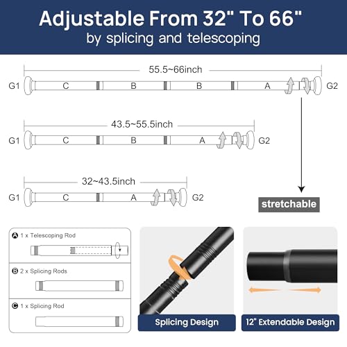 - 【قضيب شد قابل للتعديل】بتصميم جديد للربط والتداخل القابل للتمدد مع الحفاظ على شد الزنبرك، يمكن تمديد قضيب الستارة هذا من 81 سم إلى 1.68 م. يأتي مع 3 قضبان بطول ثابت وقضيب واحد قابل للتمدد بتصميم متداخل، يمكنك ضبط الطول بسهولة ومرونة حسب حاجتك.