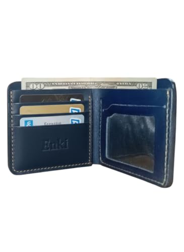 Generic - Enki محفظة رجالية جلد طبيعي، تصميم Bifold، لون كحلي، 3 فتحات للكروت مع جيب شفاف للهوية