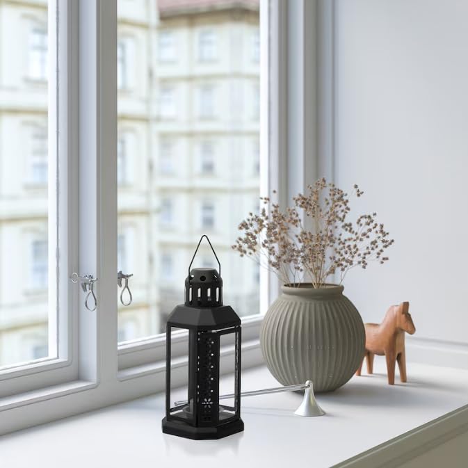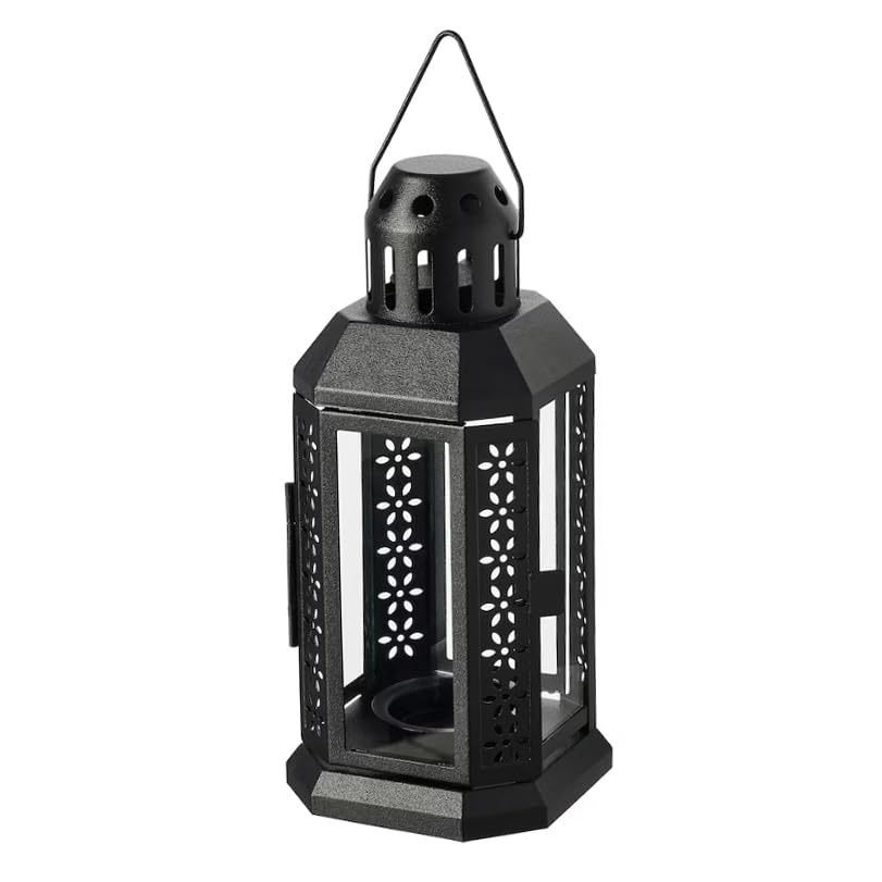 - فانوس للشموع الصغيرة - للاستخدام الداخلي والخارجي - أسود - 22 سم