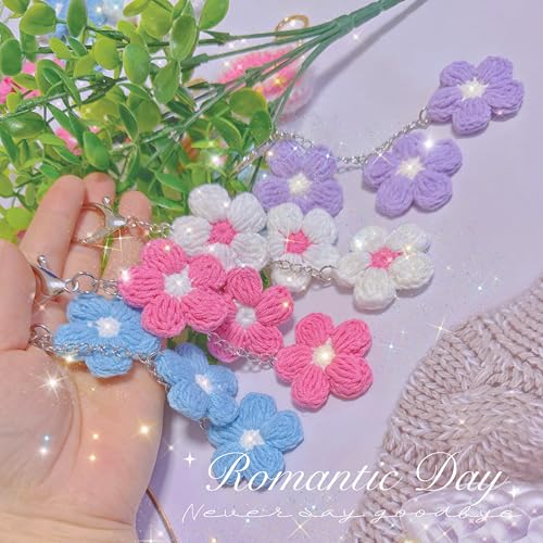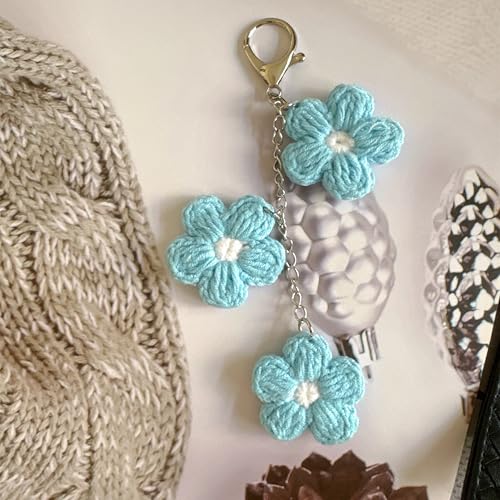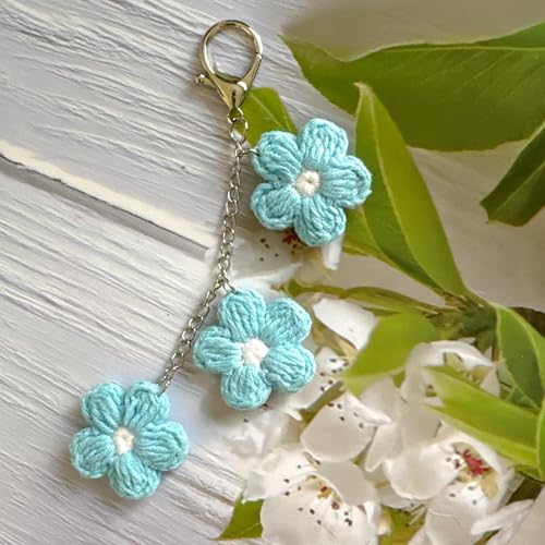 Ensiolau - سلسلة مفاتيح مصنوعة يدويا على شكل زهرة كروشيه من انسيولاو، سلسلة مفاتيح للسيارة، تعليقة شنطة - هدية مثالية للعطلات للنساء والفتيات