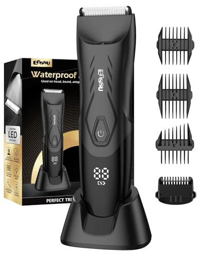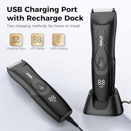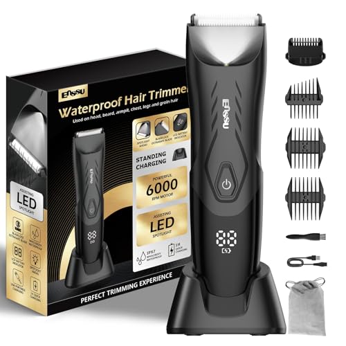 ENSSU - ماكينة إزالة شعر الجسم الكهربائية للرجال لتشذيب شعر المنطقة الحساسة مزودة بشفرة سيراميك آمنة للبشرة وقطعة شحن لاسلكية مقاومة للماء ومناسبة لتشذيب شعر المنطقة الحساسة والصدر واللحية من ENSSU، لون أسود