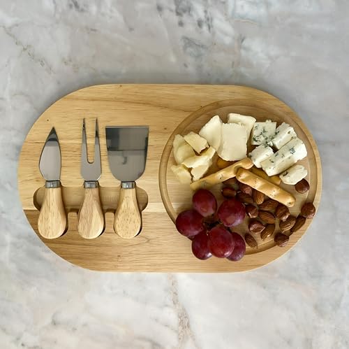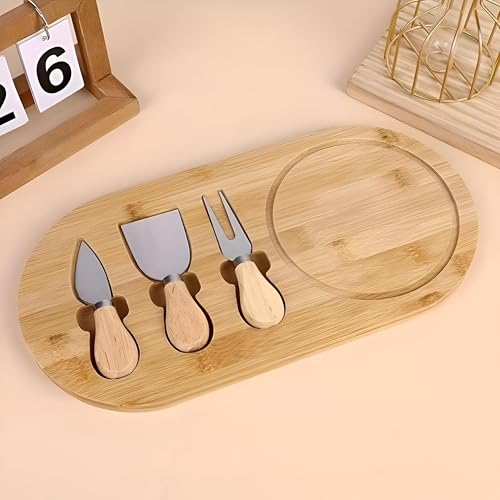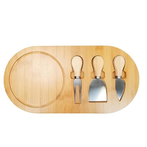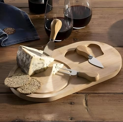 Generic - مجموعة ترفيهية - لوح جبن من الخيزران المتين مع ثلاثة سكاكين عملية، بالإضافة إلى لمسة نهائية طبيعية وأقدام غير قابلة للانزلاق ومساحة سطح واسعة مصممة لدهن المقبلات الرائعة.