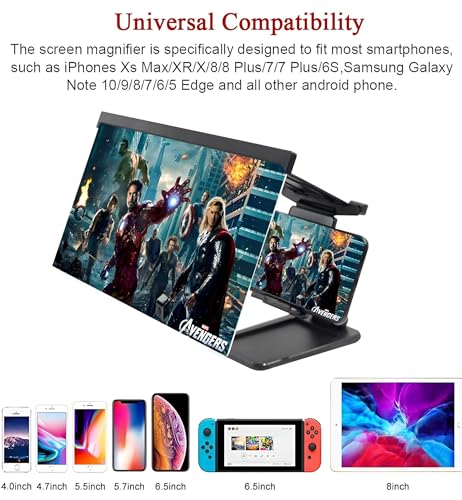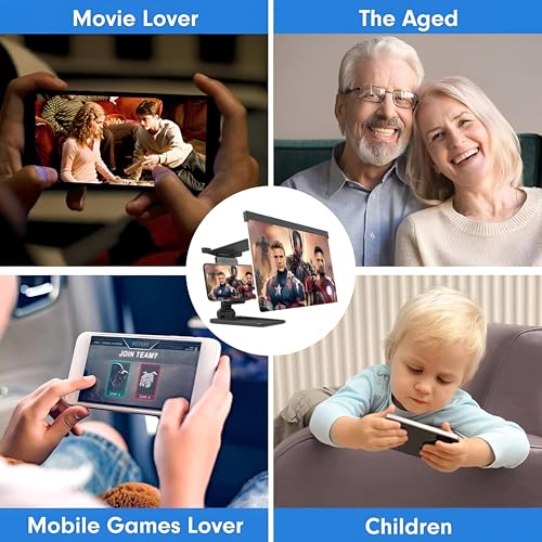 Generic - معزز شاشة ترفيهي - مكبر شاشة ثلاثي الأبعاد عالي الدقة HD مقاس 12 بوصة، للموبايلات الذكية مع حامل موبايل قابل للتعديل لليالي الأفلام والألعاب