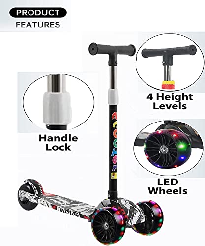 Entiq - سكوتر بـ4 مستويات ارتفاع قابلة للتعديل و3 عجلات بإضاءة ليد للأطفال من عمر 3 إلى 12 سنة من انتيك (متعدد الألوان)