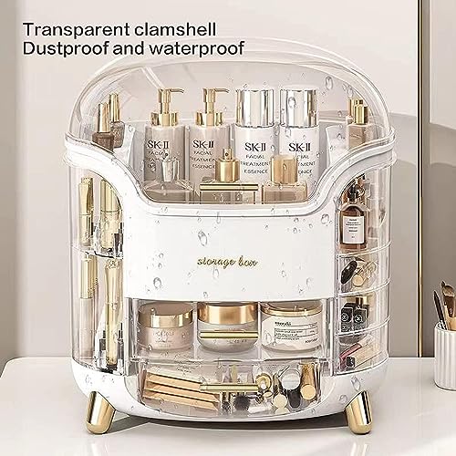 - حامل منظم مكياج الكل في واحد مع غطاء مقبب يتميز منظم المكياج الأنيق هذا بغطاء قبة شفاف يوفر تخزينًا خاليًا من الغبار للأشياء الأطول مثل العطور والأمصال واللوشن مصمم كحامل منظم مكياج أنيق، فهو يجمع بين وظائف صندوق المكياج وصندوق المجوهرات والصندوق البلاستيكي للتخزين - كل ذلك في وحدة واحدة، مما يحافظ على ضرورياتك أنيقة ومرئية ويسهل الوصول إليها.