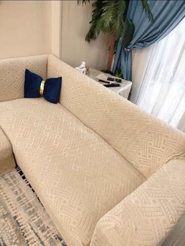 Generic - غطاء قطيفة ثقيل من انتري مناسب للكنبة الكبيرة والصغيرة و2 كرسي - سهل التركيب والغسل - لون رمادي (بيج)، 4 قطع