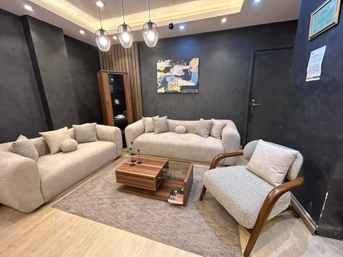 Generic - انتريه مودرن كامل مكون من كنبة 3 + كنبة 2 + فوتيه – خشب زان أحمر فاخر
