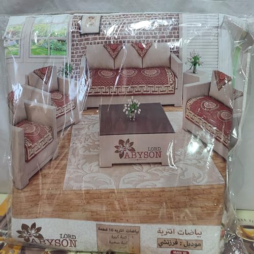 Generic - طقم بياضات انتريه 10 قطع 1 كنبة كبيرة مقاس 2 متر عرض 70 سم و صغيرة 1.5 كرسي في 70سم اللون بيج، بطانة