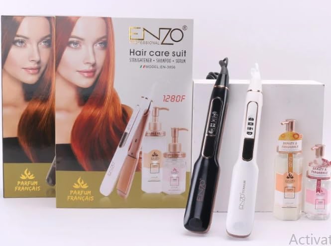Generic - مكواة فرد الشعر إنزو بروفيشنال موديل 3856 بدرجة حرارة 1280 مكواه بمادة سيراميك +زيت أساسي للعناية بالشعرعلاج بالكيراتين + زجاجات تغذية هدية متعدد الألوان