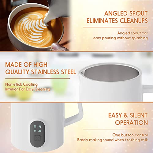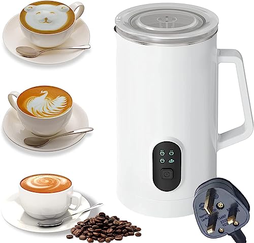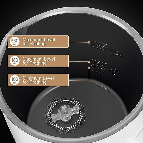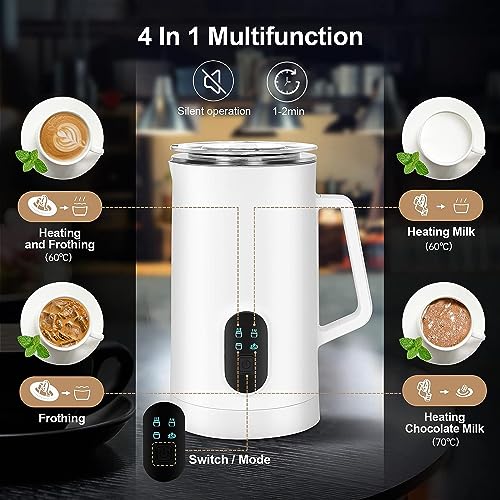 EOGILY - أداة خفق اللبن الكهربائية 4 في 1، أداة لصنع رغوة أوتوماتيكية دافئة وباردة وسخان لبن لللاتيه والكابتشينو والماكياتو من ايوجيلي، أبيض، 300 مل، 297.66 جم، 400W