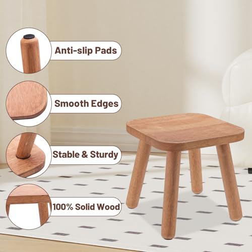 EOKPHULL - كرسي خشب للبالغين من يوكفهول، كراسي مطبخ مع أربع أرجل مجمعة ووسادات مضادة للانزلاق، كرسي جلوس محمول بخطوة واحدة للحمام وغرفة المعيشة وغرفة النوم (لون خشب الجوز)