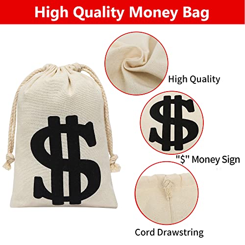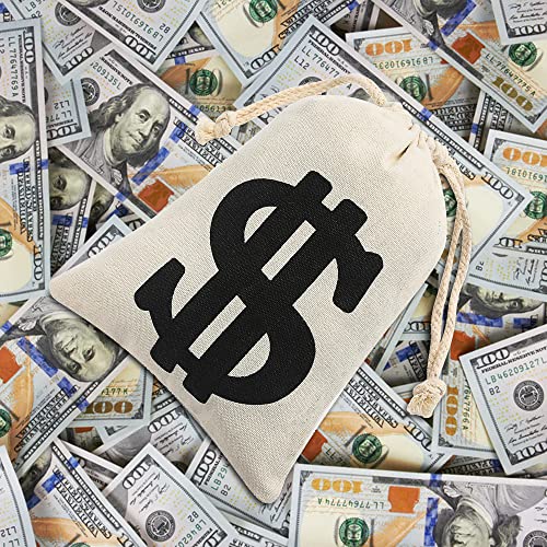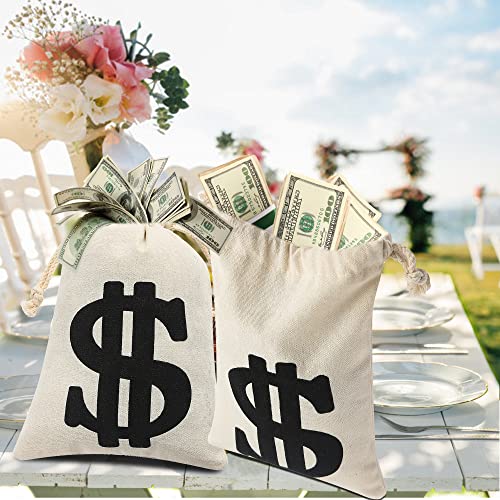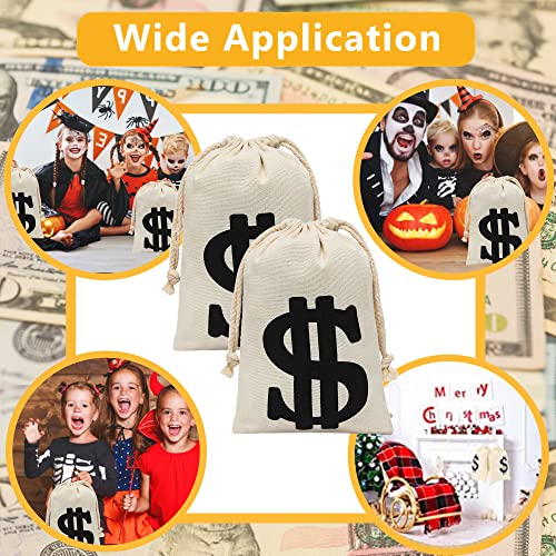 Eoocan - حقيبة نقود قماشية طبيعية مع رباط اغلاق لهدايا حفلات الالعاب، مقاس 6.3 × 9 انش، شنطة نقود وعلامة الدولار للبنك والسارق والقراصنة ورعاة البقر والهالوين والحفلات التنكرية، أسود
