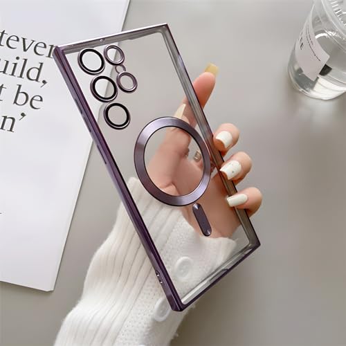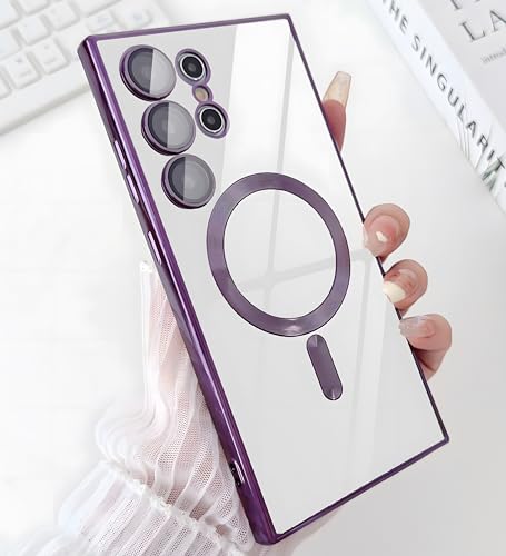 Eorkvr - جراب حماية مطلي شفاف من البولي يوريثين المقاوم للحرارة لموبايل سامسونج جالاكسي S24 الترا ممتص للصدمات ومتوافق مع خاصية الشحن اللاسلكي من يوركفر، لون أرجواني