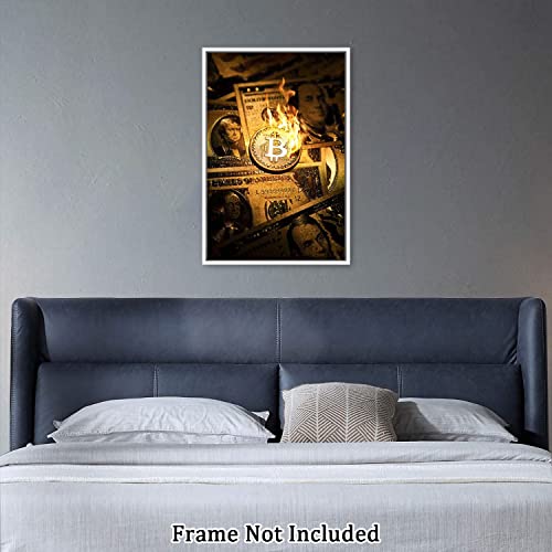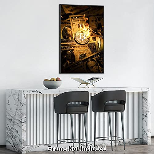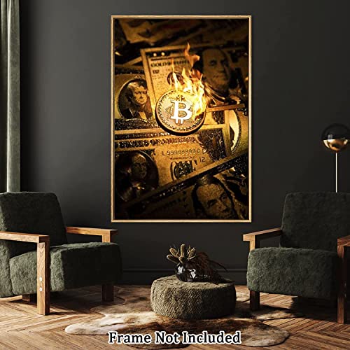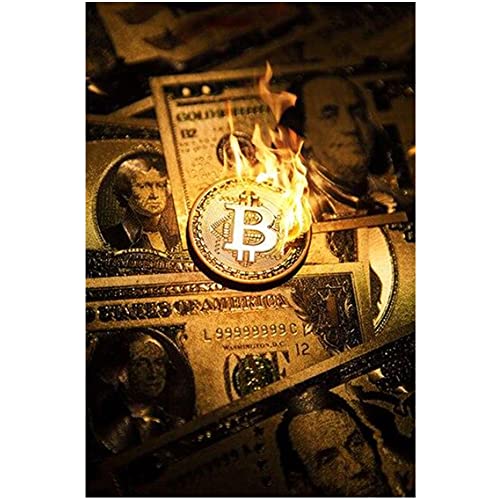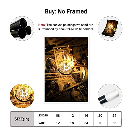 Eorntdy - لوحة فنية جدارية مصنوعة من قماش بيتكوين باللون الذهبي المحترق لوحات مطبوعة على شكل عملة معدنية عصرية غير مؤطرة لغرفة المعيشة وغرفة الطعام النوم والحمام وديكور المنزل 8 × 12 انش