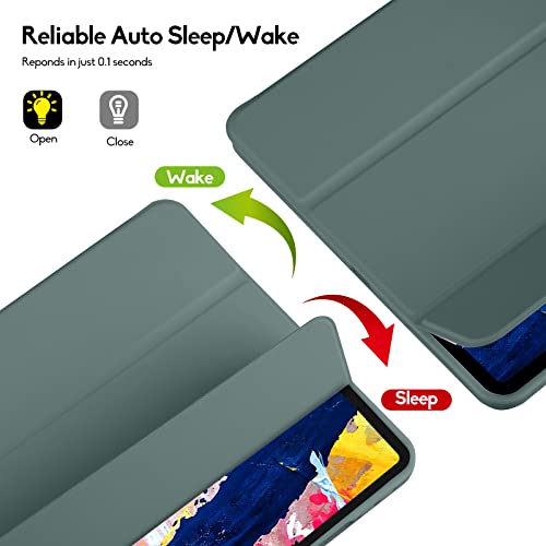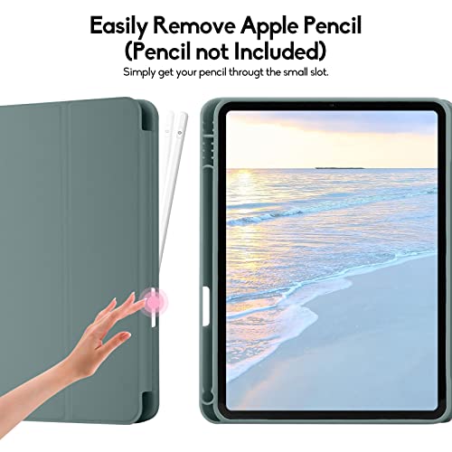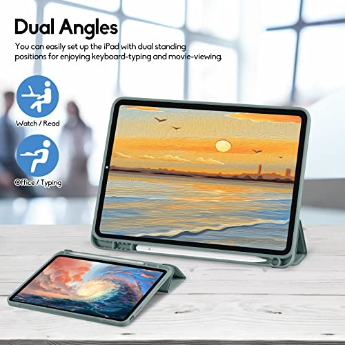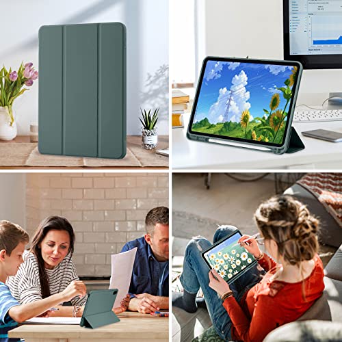 Eoszaous - جراب متوافق مع اي باد الجيل العاشر 10.9 بوصة/ 28 سم مع حامل قلم، حامل رفيع مع غطاء خلفي صلب مع خاصية الاستيقاظ/النوم في السيارة، أخضر داكن، البولي يوريثين الحراري