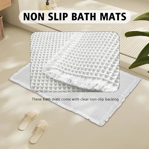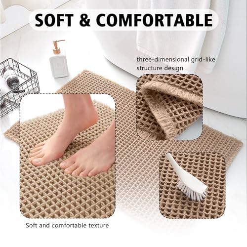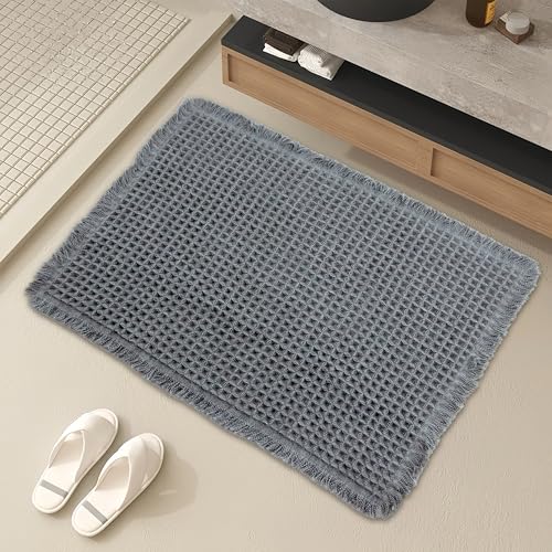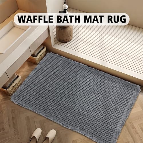 EP Jeans - سجادة حمام بتصميم وافل من اي بي جينز، 18 انش × 25 انش، فائقة الامتصاص ومضادة للانزلاق لارضية الحمام، سجادة حمام فائقة النعومة قابلة للغسل في الغسالة، سجاد حمام مع شراشيب، رمادي