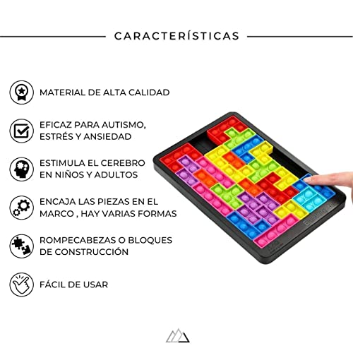 Epeak Brands - لعبة مكعبات تتريس فيدجيت من ابيك براندز، لعبة مكعبات بناء بازل حسية تعمل بالضغط على الفقاعات لتخفيف التوتر ودعم التركيز وتقليل التوحد ولعبة تعليمية لتحفيز التعليم المدرسي