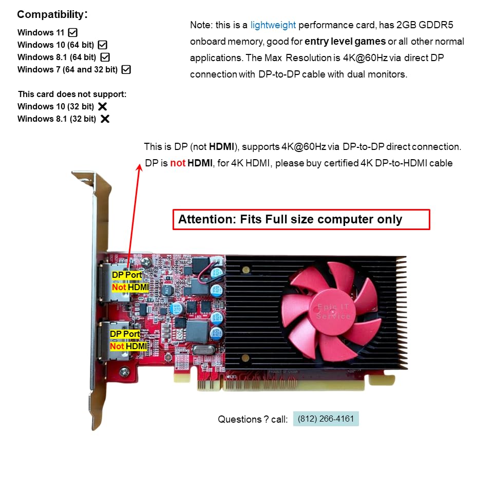 Epic IT Service - بطاقة رسومات AMD راديون R7 430 2GB GDDR5 PCI-E 3.0 × 8 ومنفذ عرض مزدوج (يدعم 4K)، يناسب كمبيوتر بحجم كامل، بطاقة أداء خفيف متوافقة مع كمبيوتر اتش بي 5JW82AA من ايبيك اي تي سيرفس، L39871-001
