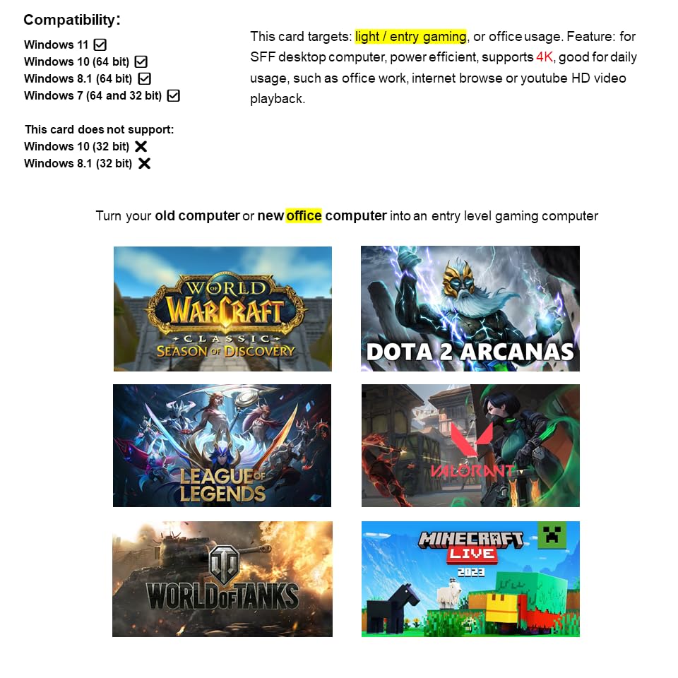 - بطاقة أداء للألعاب الخفيفة، مع منافذ إخراج DP مزدوجة، تدعم توصيل شاشتين.