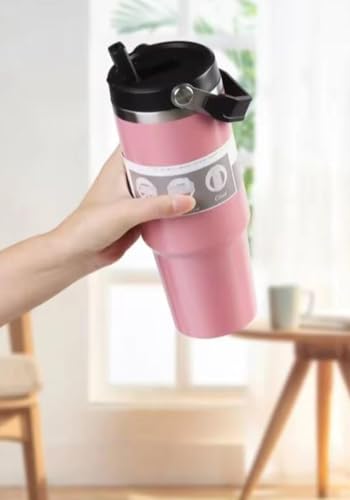 Epichunt - كوب تمبلر حراري من الفولاذ المقاوم للصدأ مضاد للتسريب بغطاء 2 في 1 وشفاطة، زجاجة مياه مزدوجة الجدار لحفظ البرودة لـ 12 ساعة والمشروبات المثلجة 24 ساعة من ايبيك هانت - وردي (Peach Pink) سعة 900 مل
