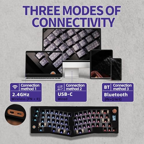 EPOMAKER - مجموعة لوحة مفاتيح ميكانيكية اليس مع اتصال بلوتوث ولاسلكي 2.4 جيجاهرتز ومنفذ نوع C وتبديل السريع مع شاشة وتقنية ان كيه ار او وإضاءة خلفية ار جي بي لنظام ويندوز وماك واوفيس من ايبوميكر، ABM066 (أسود)