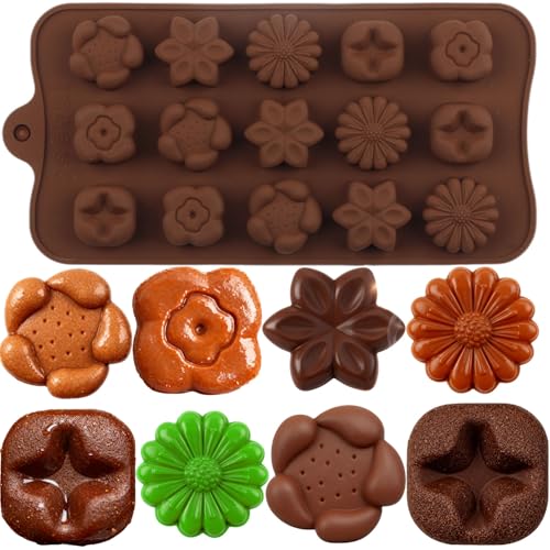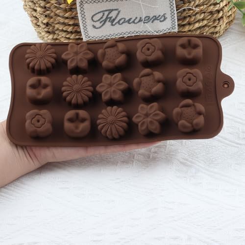 EPYHREHM - قوالب شوكولاتة سيليكون على شكل زهرة مكونة من 15 تجويف لتزيين الكيك والحلوى والشوكولاتة من اي بي واي اتش ار اي اتش ام