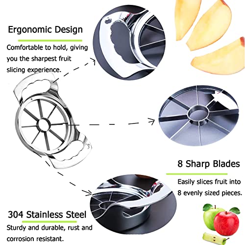 ERFGT - قطاعة شرائح فواكه من الفولاذ المقاوم للصدأ، قطاعة تفاح مع 8 شفرات، قطاعة تفاح للتفاح والكمثرى والبطاطس والبصل من ERFGT