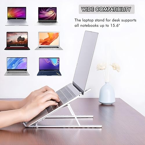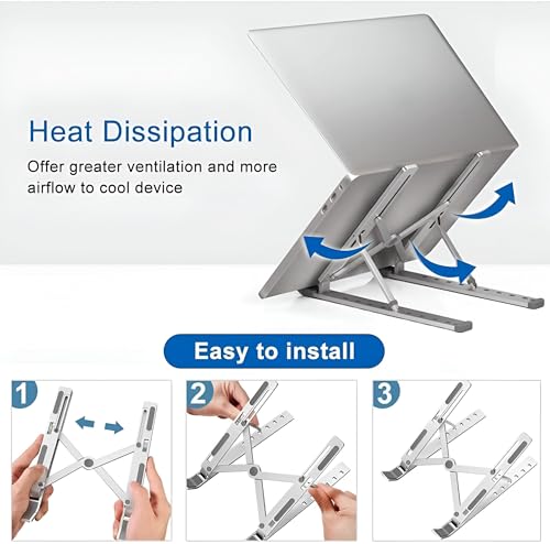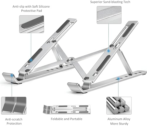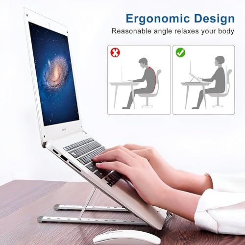 Generic - حامل لاب توب مريح قابل للتعديل: تصميم محمول وقابل للطي مع تهوية معززة، حل موفر للمساحة لاجهزة اللابتوب والتابلت، لمسة نهائية فضية وتوافق عالمي لاقصى قدر من الراحة