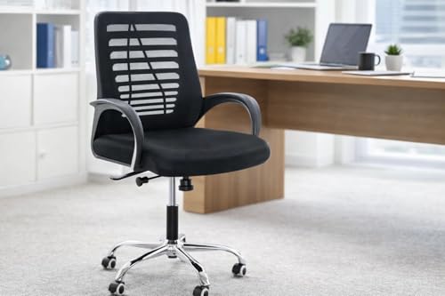Generic - كرسي مكتب مريح، ظهر شبكي اسود، مقعد مبطن، قاعدة كروم مع عجلات، ارتفاع قابل للتعديل