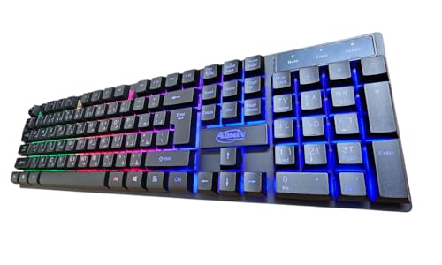 Generic - لوحة مفاتيح وكيبورد ألعاب مريح RGB بمنفذ USB، إضاءة خلفية متعددة الألوان، تصميم كامل الحجم مع لوحة أرقام للاعبي الكمبيوتر والمكتب