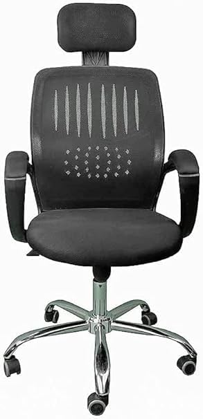 Generic - كرسي مكتب دوار مريح، مسند رأس قابل للتعديل، ظهر شبكي، قاعدة معدنية، أسود، 120 × 50 × 50 سم