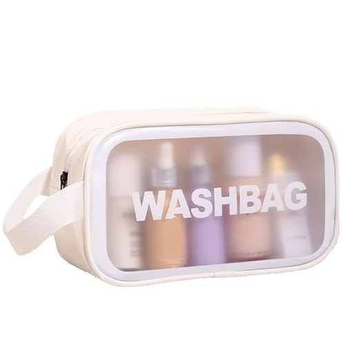 ERHETUS - شنطة كبيرة متعددة الوظائف من بلاستيك PVC مقاومة للماء بخطاف للنساء والبنات منظم سفر لتخزين الغسيل ومستحضرات تجميل وأدوات الزينة واكسسوارات الحمام ومجموعة العناية الشخصية ارهيتوس 20×12×8 سم أبيض