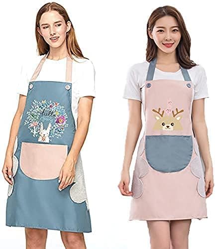 ERHUO - مريلة مطبخ قابلة للتعديل مع جيبين للمنزل والمطعم والحرف اليدوية والحديقة والشواء والمدرسة والمقهى، قطعتان من ايرهو (أزرق ووردي)