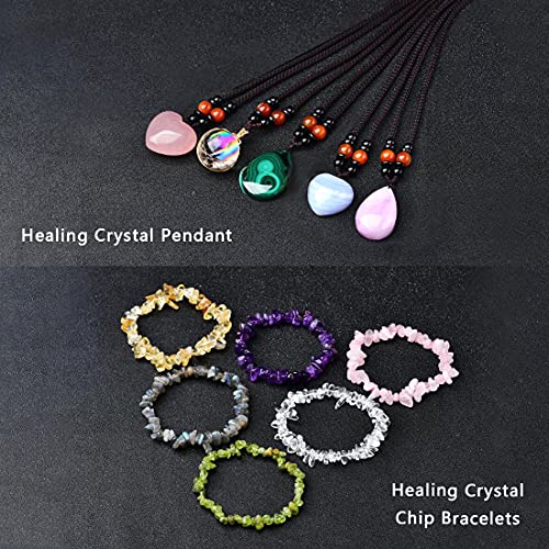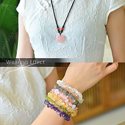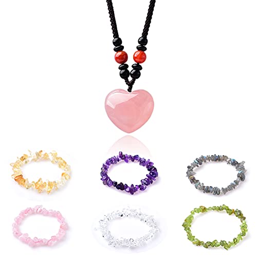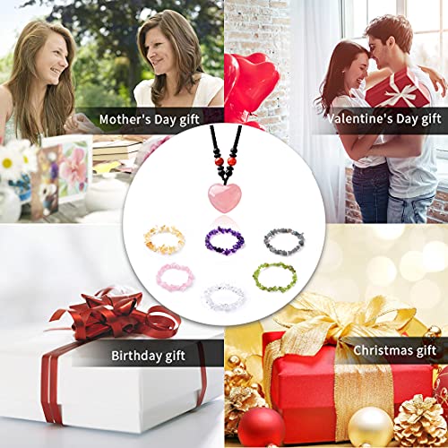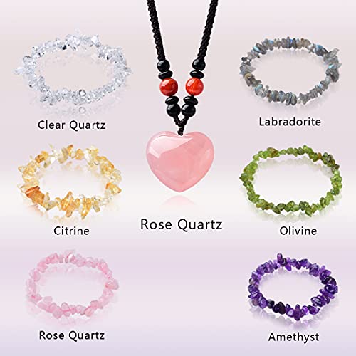 ERICNVOC - قلادة على شكل قلب من الكوارتز الوردي الطبيعي | كريستال علاجية للطاقة | اساور قابلة للتمدد مصنوعة يدويا احجار كريمة شاكرا كريستالية هدية للرجال والنساء كوارتز ايركنفوك ستانلس ستيل