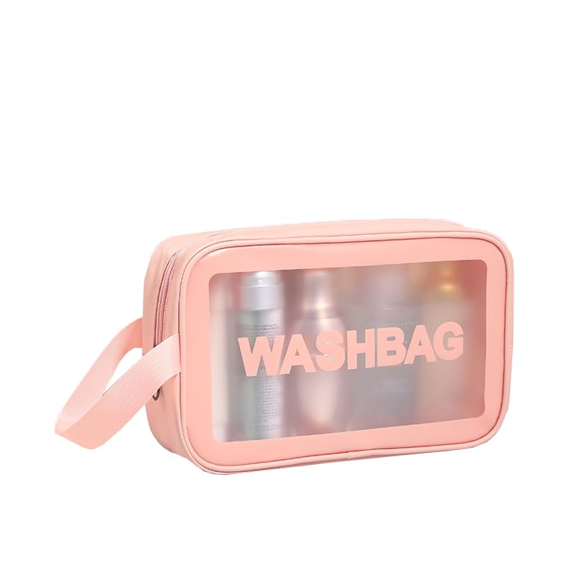 ERJUR - شنط شفافة لادوات الزينة للنساء من ايرجور مستحضرات تجميل معلقة للسفر طاردة للماء مناسبة لون وردي مقاس M بلاستيك
