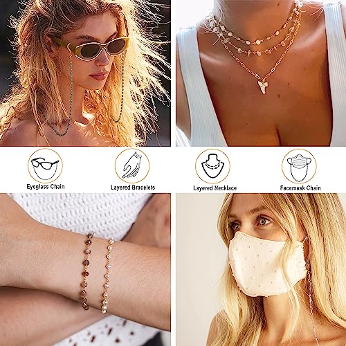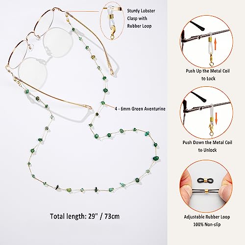 ERNAULO - سلسلة نظارات للنساء من ايرنولو، حامل نظارات حول الرقبة من الكريستال الطبيعي، سلاسل نظارات شمسية للنساء، افينتورين اخضر، 28 انش