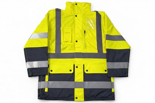 Generic - جاكيت أمان عالي الرؤية مقاوم للحريق لجميع الفصول من إيسكيب فور سيزونز، أصفر وأسود مع شرائط عاكسة
